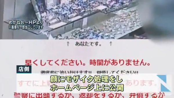 店側は男性の顔にモザイク処理をして公開し返却や支払いを呼びかけていますが、来月1日までに応じなかった場合、画像にモザイク処理をせず、公開するとしています。