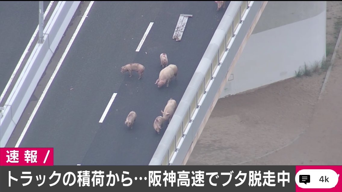 午前9時25分ごろ、大阪府池田市の阪神高速池田線で「豚が逃げている」と料金所の職員から連絡がありました。