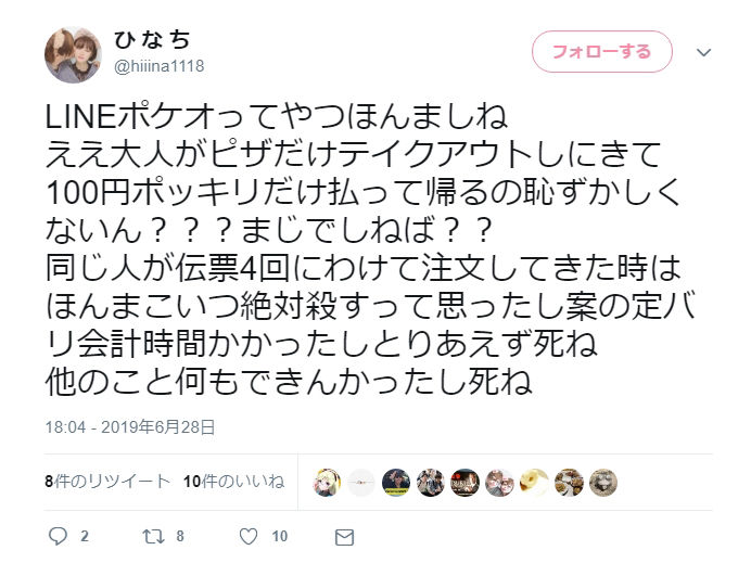 ガスト店員「LINEポケオってやつほんましね。ええ大人が100円ピザだけ買うの恥ずかしくないん?まじでしねば?」