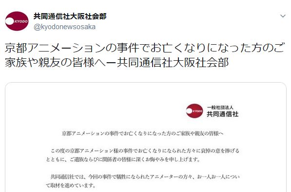 【炎上】 共同通信「京アニ放火、犠牲者の遺族や親友の皆さんは取材に応じて欲しい」