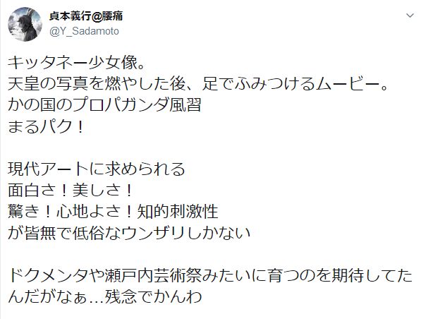 【エヴァ】 貞本義行氏「キッタネー少女像。かの国のプロパガンダ風習 まるパク!」