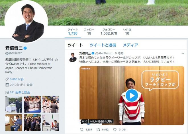 首相官邸ツイッター「いよいよラグビーワールドカップがここ日本で開幕します!」→炎上