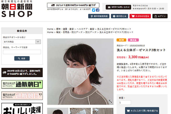 【コロナ禍】「朝日新聞」通販ショップがひどい 2枚で3300円の布マスク