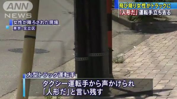 飛び降り女性がトラックの荷台にぶつかり死亡→運転手は2キロ先で「人形だ」と血だらけの女性を降ろし立ち去る