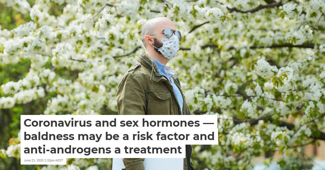 薄毛がCOVID-19の重症化リスクと関係しているのは、男性型脱毛症に影響を与えるアンドロゲンという男性ホルモンが原因だとみられています。新型コロナウイルスが細胞に侵入する際に重要な役割を果たすタンパク質分解酵素「II型膜貫通型セリンプロテアーゼ(TMPRSS2)」はアンドロゲン受容体と結合すると活性化するため、男性ホルモン・アンドロゲン受容体・TMPRSS2が多いほど、COVID-19が重症化する確率が高まると考えられます。アンドロゲンとCOVID-19関連性について調べたカリフォルニア大学とイェール大学の研究も、血中のアンドロゲン濃度が高いほどCOVID-19の感染確率・重症化確率が高いと結論付けています。 (抜粋)