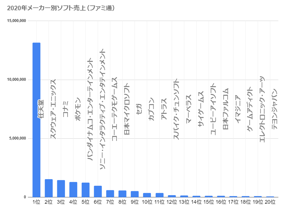 2020年ゲーム会社別ソフト売上発表ソースはファミ通